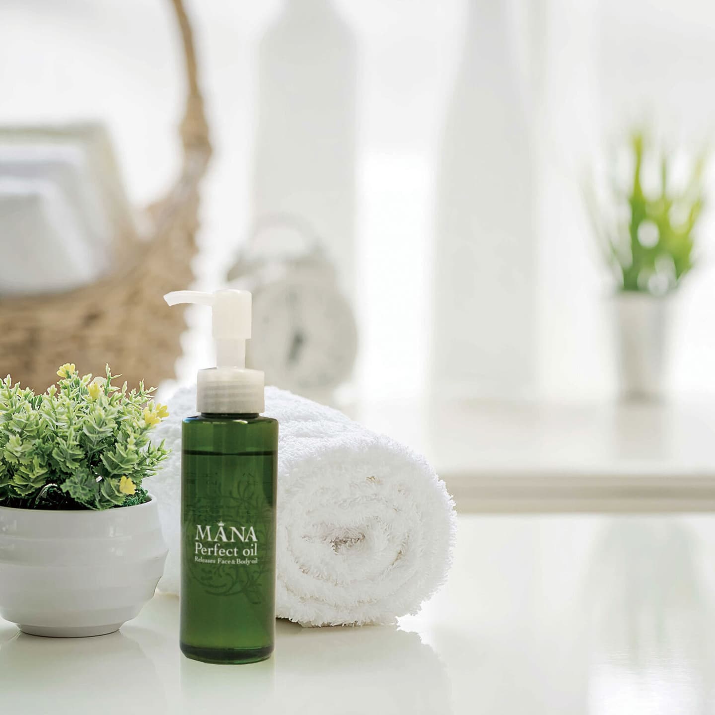 血管を強くし、血行を促し消化機能を高めることで新陳代謝促進に古くから愛用されている「若返りハーブ」のローズマリーと、不飽和脂肪酸であるオレイン酸とリノール酸、ポリフェノール、レスベラロール、ビタミン E を含む「若返りオイル」のピーナッツ油でできているスペシャルでミラクルなオイルです。この 1 本の 2 種類の成分だけで、肩、首、腰、筋肉、関節の疲労感の血流改善、顔、足、全身のむくみ改善、乾燥、しわ、くすみをなくし美肌効果や、フェイスライン、目元、口元、ほうれい線のリストアップに効果的です。特別なこの MANA パーフェクトオイルはそびゆにご来店された方にしか体感できないオイルです。